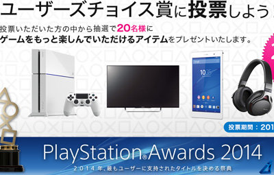 『プレイステーションアワード2014』が今日から投票スタート!PS4、ブラビア、Xperiaなどが当たるぞおおおおお