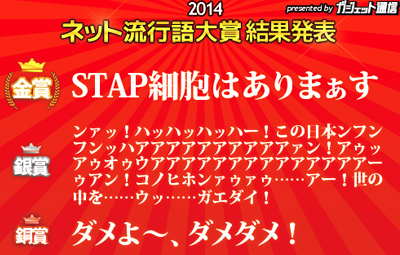 『ネット流行語大賞2014』発表!!金賞:「STAP細胞はありまぁす」 銀賞:「この日本ンフンフンッハアアアアアアアアアアァン!」